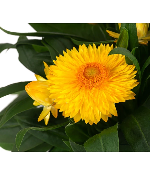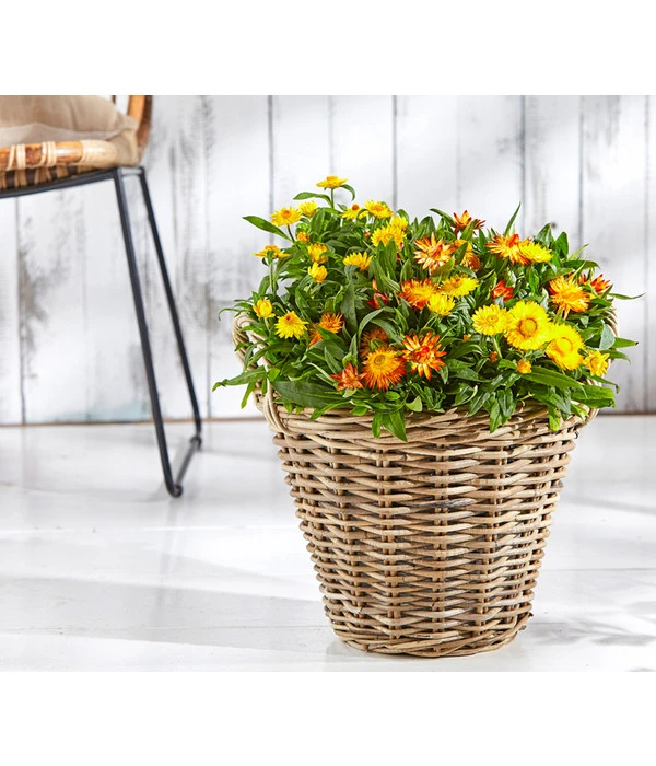 Bis vor wenigen Jahren waren Strohblumen in vielen Gärten ein beliebter Sommergast und hatten dann im Winter in hübschen Trockensträußen einen zweiten dekorativen Auftritt. So nach und nach verschwanden sie von den Blumenbeeten und aus den Balkonkästen, aber jetzt feiern sie ein strahlendes Comeback. Mit neuen Farben und verbesserten Eigenschaften treten sie erneut ihren Siegeszug in die heimischen Gärten an. Nur extrem robuste und kräftige Sorten werden bei uns für diese Dehner Premium XXL-Serie ausgesucht, die jeden Blumenfreund mit ausdauernder Blüte und einer langen Lebensdauer erfreut. Es wird auch für Sie ein aufregendes Erlebnis sein, wenn diese außergewöhnliche Sommerblume ab Mai ihre feinblättrigen Blüten entfaltet, die dann leuchtende, fröhliche Farbtupfer ins Beet setzen. Aber dieses Schauspiel bietet Ihnen die Strohblume nur, wenn sie an einem sonnigen Platz stehen darf.