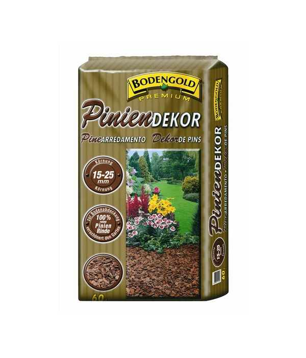 Von Natur aus gäbe es in unseren Breiten kein Fleckchen kahlen Boden. Alles wäre mit lebenden und abgestorbenen Pflanzen, Laub, Nadeln, Reisig usw. bedeckt, denn auf diese Weise schützt die Natur die Böden. Aber solche Flächen sehen natürlich in einem gepflegten Garten nicht sehr schön aus. Für alle, die zwar ihre Böden schützen, aber auch hohe ästhetische Ansprüche haben, gibt es ein hervorragendes Mulch-Material: Bodengold Premium Piniendekor. Bodengold Premium Piniendekor ist eine hochwertige Spezialerde auf Basis naturreiner, zerkleinerter und gesiebter Pinienborke maritimer Herkunft, deren rotbraune Tönung sehr dekorativ auf den Beeten aussieht und grüne Pflanzen wie prächtige Blumen erst zur vollen Wirkung bringt. Gegenüber einheimischem Rindenmulch aus Fichten und Kiefern hat Ziegler Bodengold Piniendekor zudem den Vorteil, dass es milder und neutraler in Bezug auf den pH-Wert des Bodens ist. Und außerdem verwöhnt uns Bodengold Premium Piniendekor mit angenehmem und lang anhaltendem Nadelholzduft, der uns an Urlaube im Mittelmeerraum erinnert. Die Körnung liegt bei 15 – 25 mm.