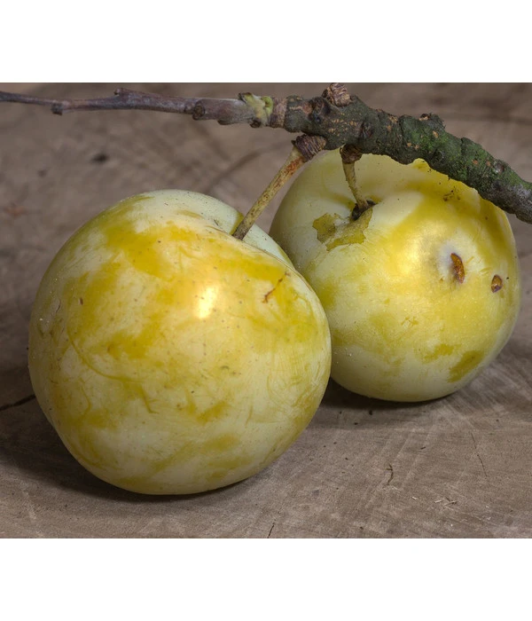 Die Sorte ‚Oullins Reneklode‘ stammt ursprünglich aus Lyon und wird seit 1850 angebaut. Ihre Früchte sind groß, gelb bis gelbgrün und zur Sonnenseite rot gemustert. Durchschimmernd hellgrün-gelb ist das saftige Fruchtfleisch, welches eher weich ist. Die Früchte sind süß und sehr aromatisch. Die Früchte der Hauszwetschge reifen Mitte bis Ende September, sind klein bis mittelgroß und verlockend blaurot bis blauschwarz. Das gelbgrüne bis orange Fruchtfleisch verwöhnt mit saftiger, sehr aromatischer Süße zum sofortigen Vernaschen.